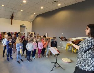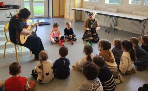 De janvier à juin, les classes des moyens et des grands ont des séances de musique avec la DUMIste Marion Taupin.
