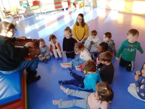 L’artiste développe avec les enfants un langage poétique avec le corps, la voix et à la musique.