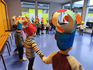 Pour célébrer la tradition, les classes ont également appris des comptines et chants sur la galette et ont dansé. Ces activités motrices ont permis aux enfants de s’exprimer avec enthousiasme.